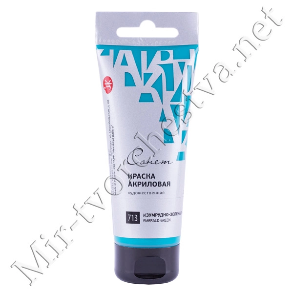 Краска акриловая, Изумрудно-зеленая, 75мл, Сонет