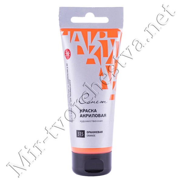 Краска акриловая, Оранжевая, 75мл, Сонет
