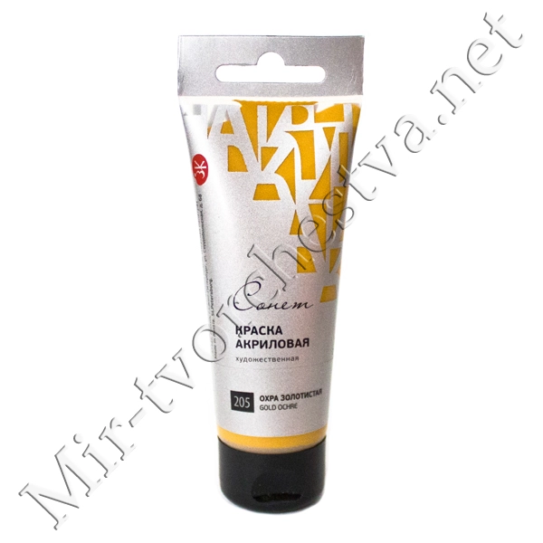 Краска акриловая, Охра золотистая, 75мл, Сонет