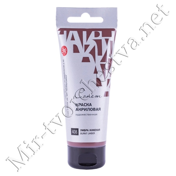 Краска акриловая, Умбра жженая, 75мл, Сонет