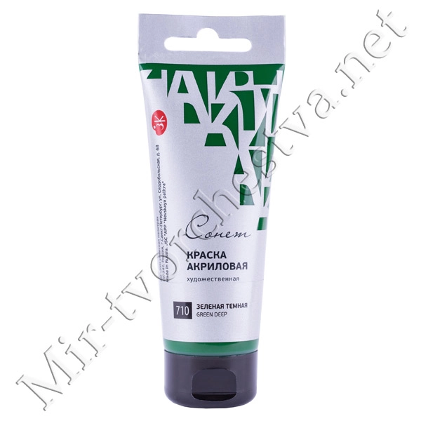 Краска акриловая, Зеленая темная, 75мл, Сонет