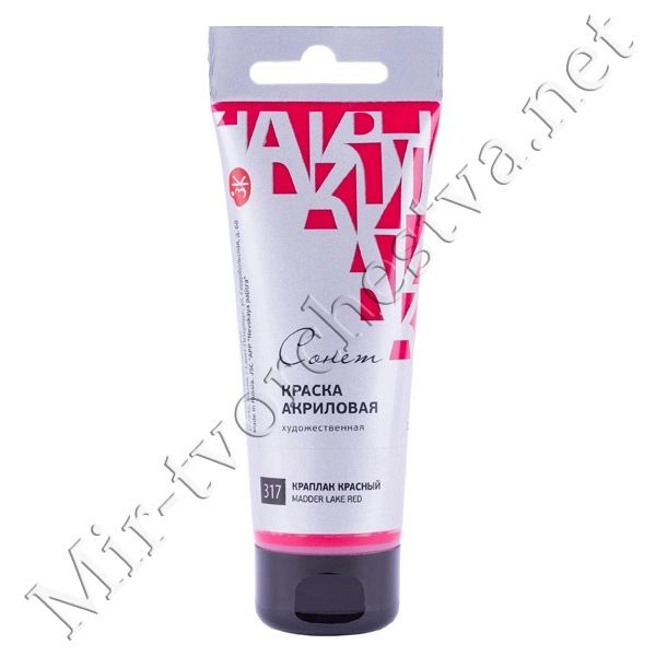 Краска акриловая, Краплак красный, 75мл, Сонет