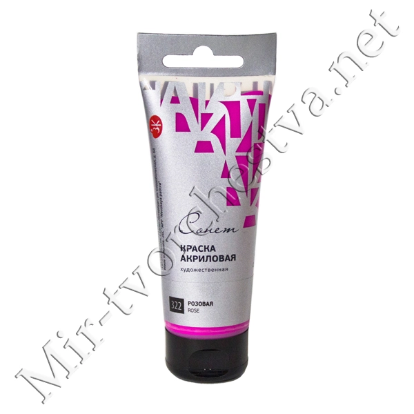 Краска акриловая, Пастельно-розовая, 75мл, Сонет