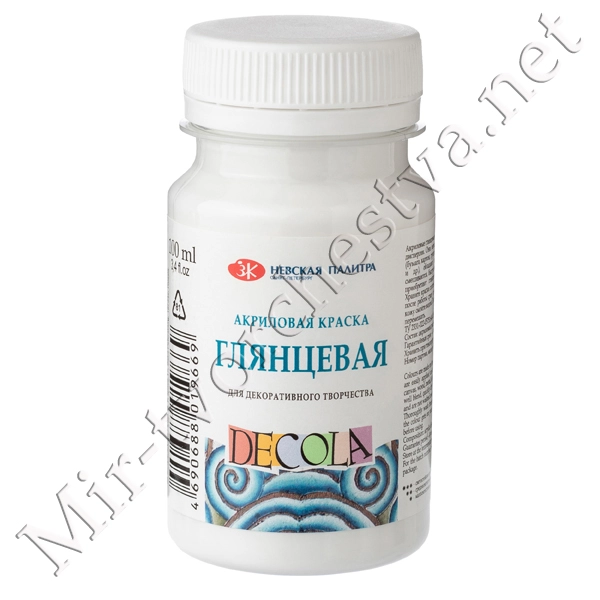 Краска акриловая, Белая, глянцевая, 100мл, Decola