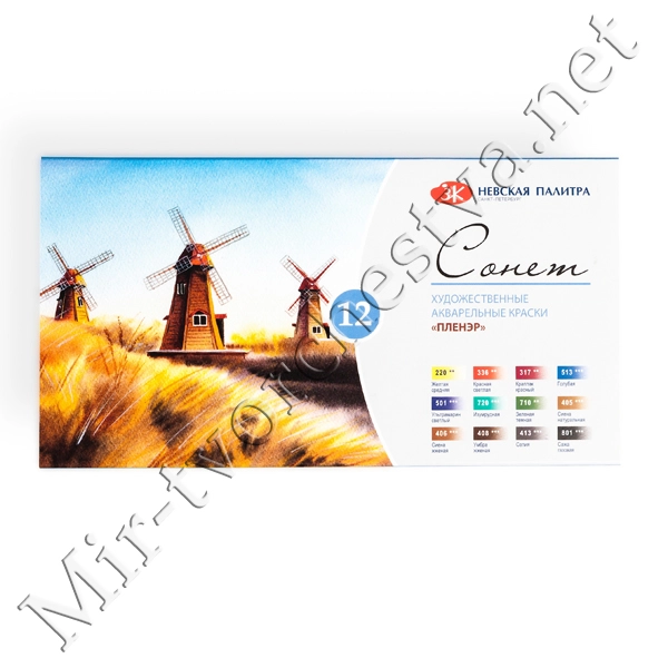 Набор акварель картон "Пленэр" 12х2,5мл, Сонет