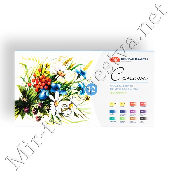 Набор акварель картон "Ботаника" 12х2,5мл, Сонет