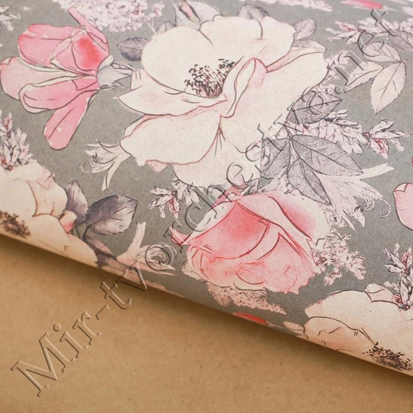 Бумага упаковочная крафтовая, 50x70см, «Цветы на сером»
