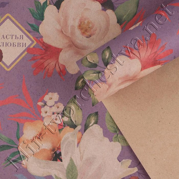 Бумага упаковочная крафтовая, 50x70см, «8 марта Счастья и любви»