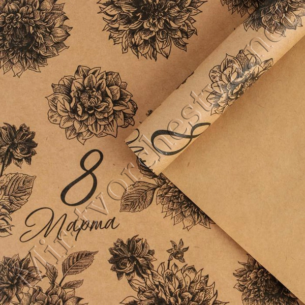 Бумага упаковочная крафтовая «Цветочное 8 марта», 50x70 см 7315945