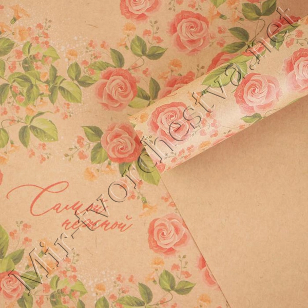 Бумага упаковочная крафтовая «Самой нежной», 50x70 см 7315959