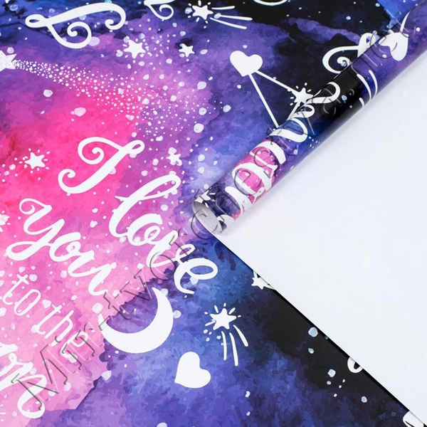Бумага упаковочная глянцевая, 70x100см, «Единороги в космосе»