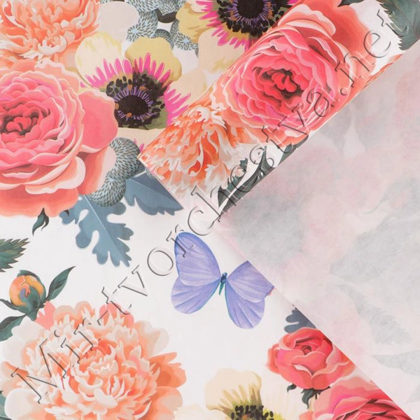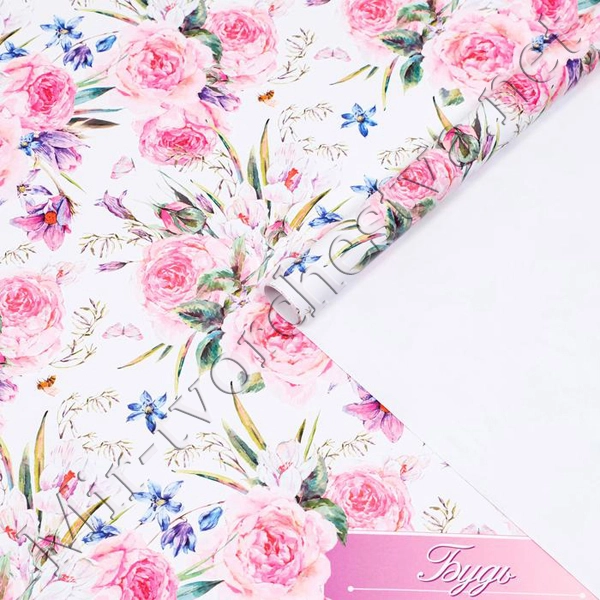 Бумага упаковочная глянцевая, 70x100см, «Нежные цветы»
