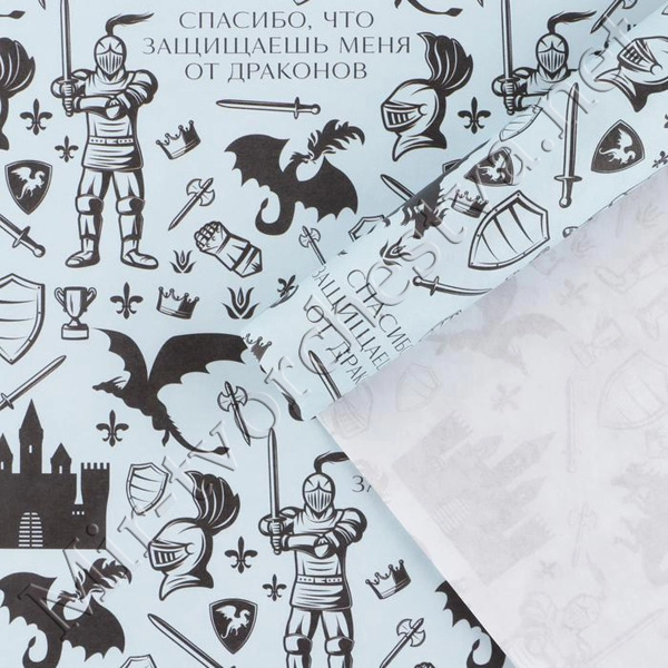 Бумага упаковочная крафтовая, 50x70см, «Рыцарю»