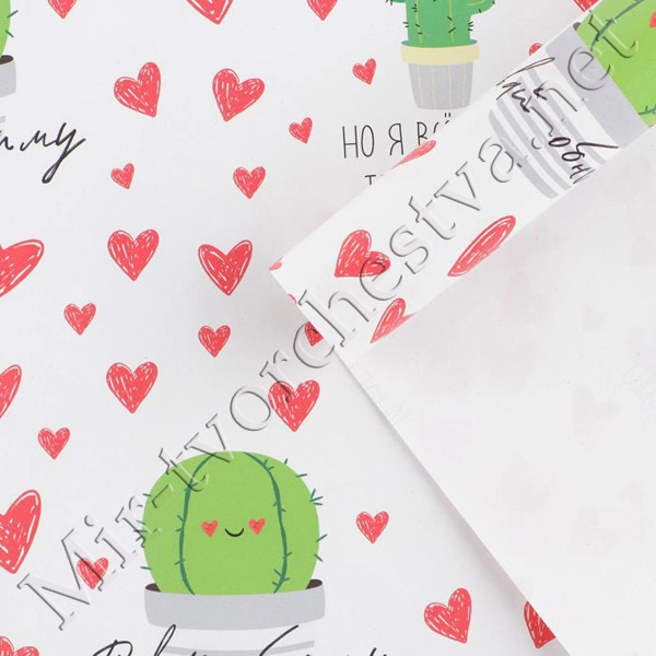 Бумага упаковочная глянцевая, 50x70см, «Кактусы»