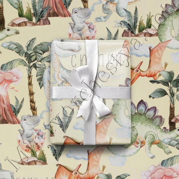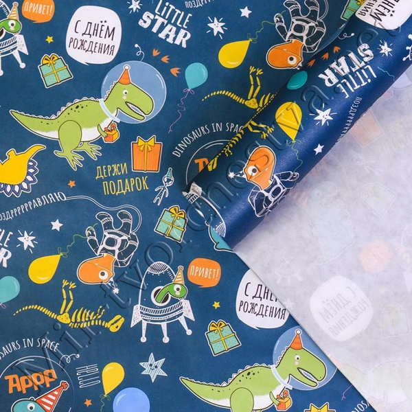 Бумага упаковочная глянцевая, 70x100см, «Подарочек от динозавров»