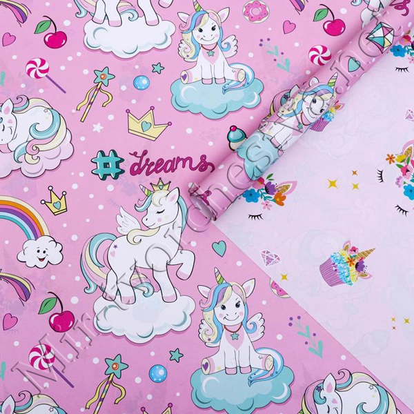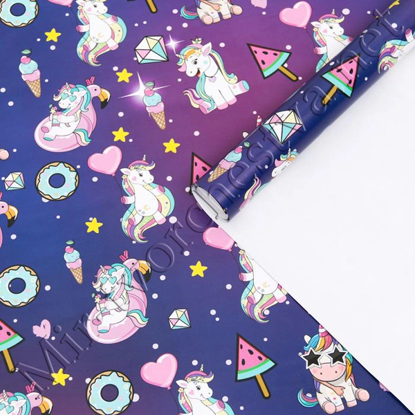 Бумага упаковочная глянцевая двусторонняя, 70x100см, «Единороги»