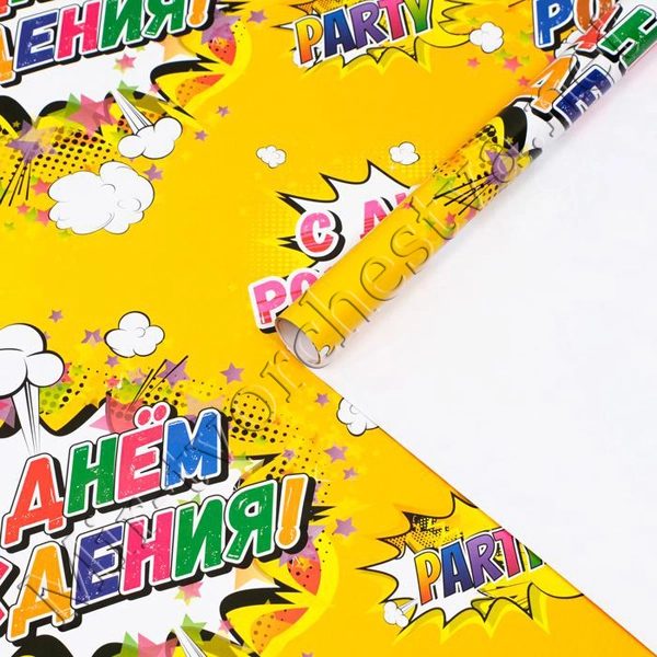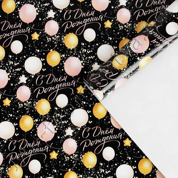 Бумага упаковочная глянцевая, 50x70см, «С Днем Рождения»