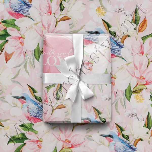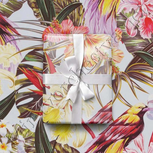 Бумага упаковочная глянцевая, 70x100см, «Птицы в тропиках»