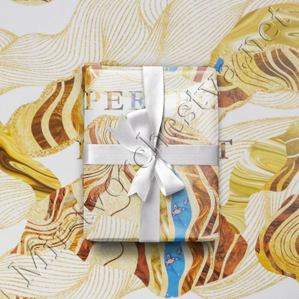 Бумага упаковочная глянцевая, 70x100см, «Мрамор с золотом»