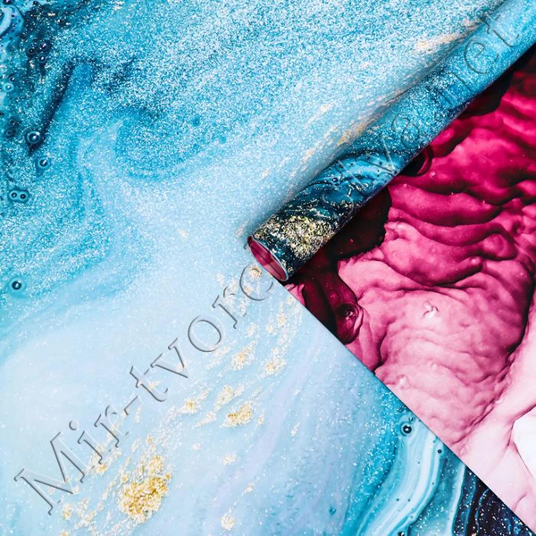 Бумага упаковочная глянцевая, 50x70см, «Мрамор», винный-синий