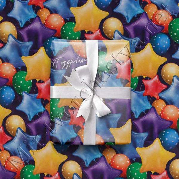 Бумага упаковочная глянцевая, 70x100см, «Воздушные шары»