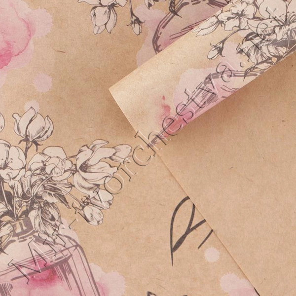 Бумага упаковочная крафтовая, 50x70см, «Цветы»