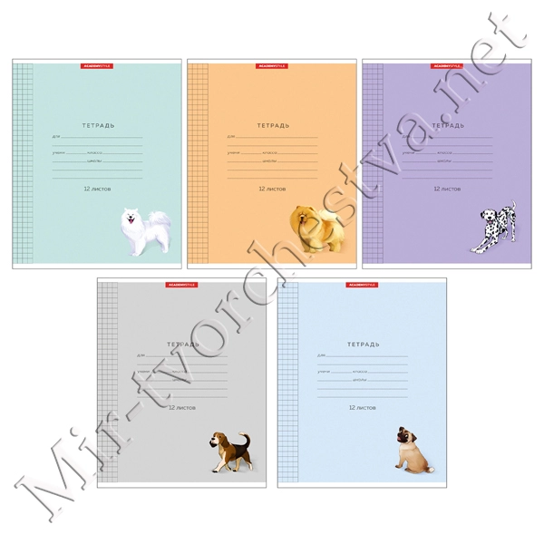 Тетрадь клетка 12 листов, Собачки, Академия-Холдинг