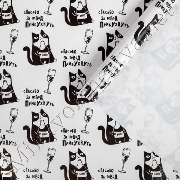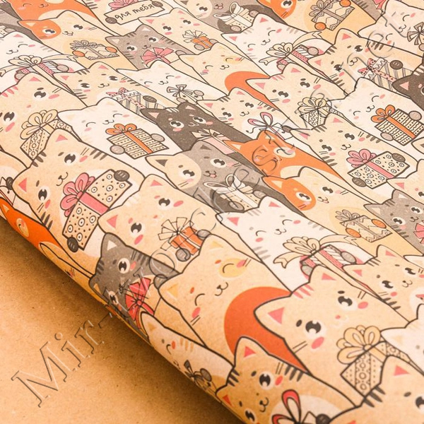Бумага упаковочная крафтовая, 70x100см, «Котики с подарками»