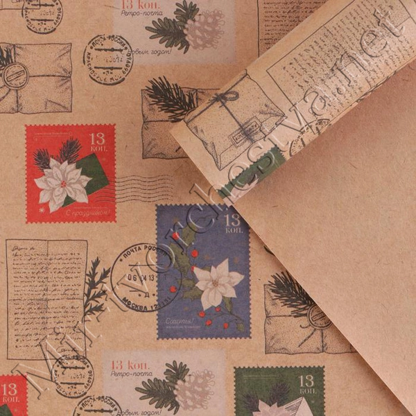 Бумага упаковочная крафтовая, 50x70см, «Почтовые марки»