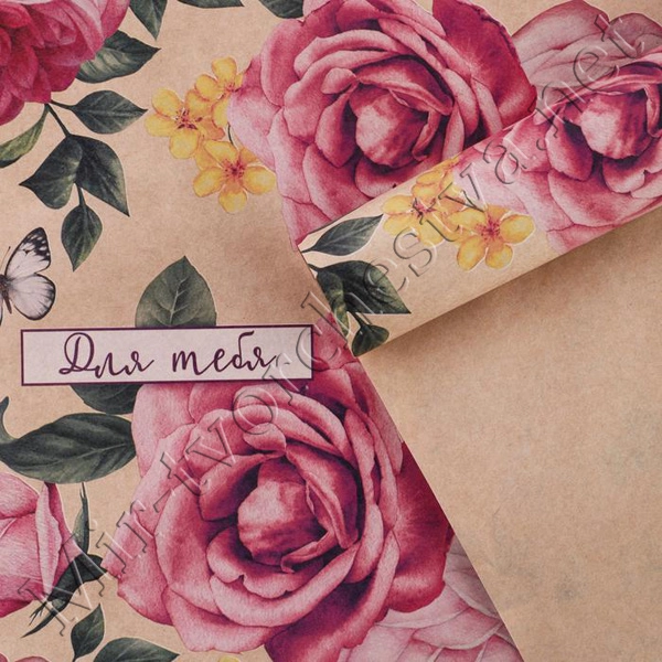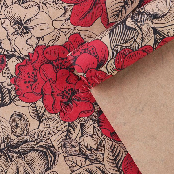 Бумага упаковочная крафтовая, 50x70см, «Цветы для тебя»
