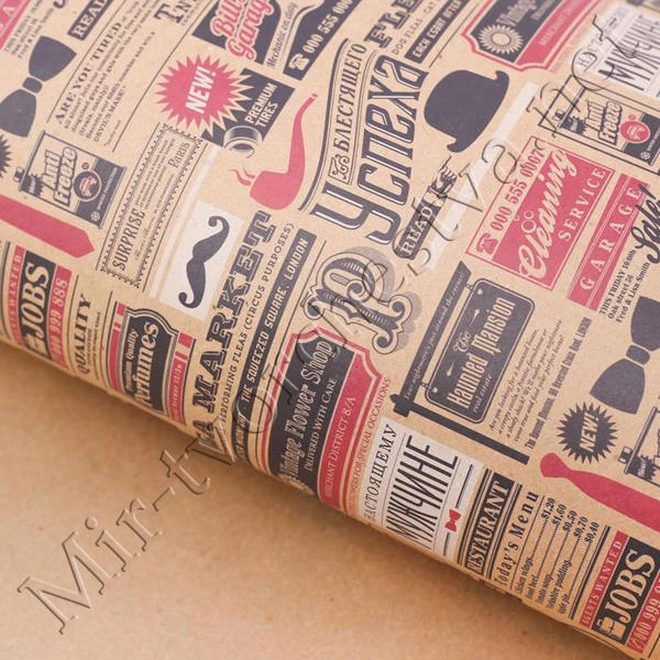 Бумага упаковочная крафтовая, 50x70см, «Газетные вырезки»