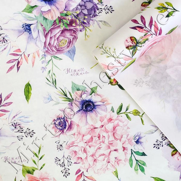 Бумага упаковочная крафтовая, 50x70см, «Акварельные пионы»