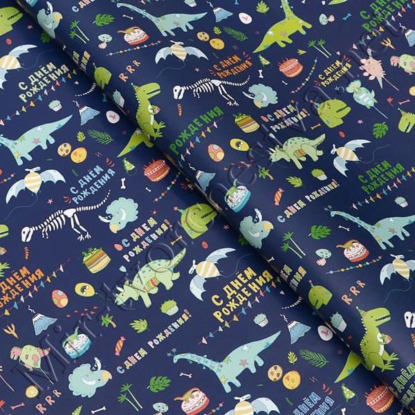 Бумага упаковочная глянцевая, 70x100см, «С днем рождения!»