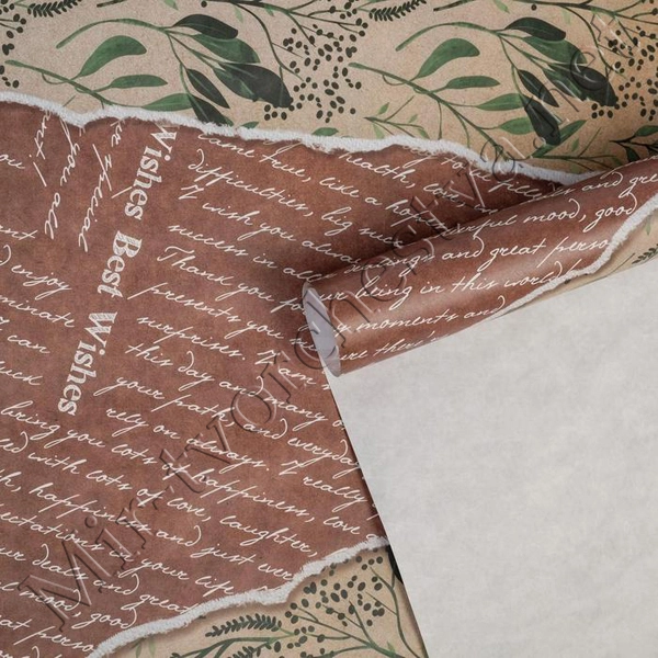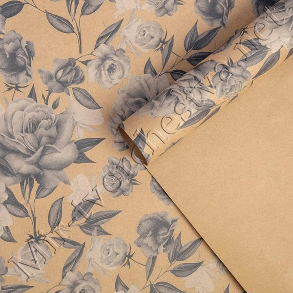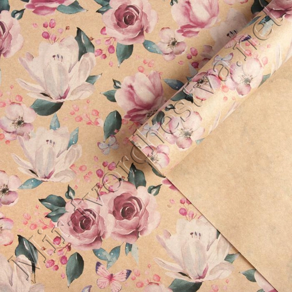 Бумага упаковочная крафтовая, 70x100см, «Нежные цветы»