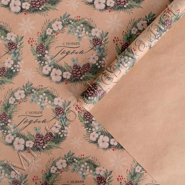 Бумага упаковочная крафтовая, 50x70см, «Венки»