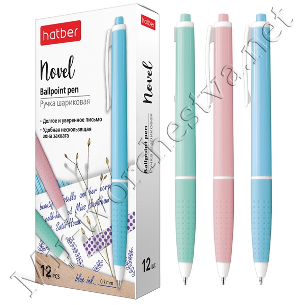 Ручка автомат шариковая, 0.7 мм Novel, Hatber