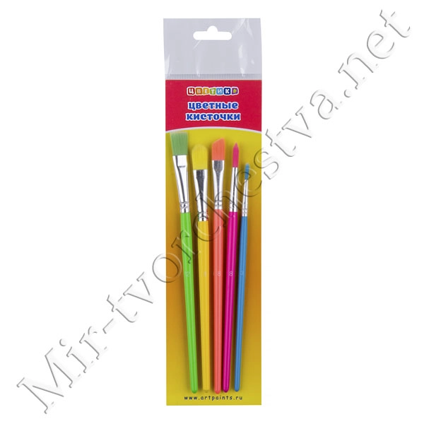 Набор цветных кисточек, 5 шт, нейлон, Цветик