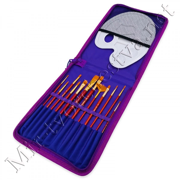 Набор кистей, СИНТЕТИКА, 12шт., в чехле+палитра, ArtCoCo