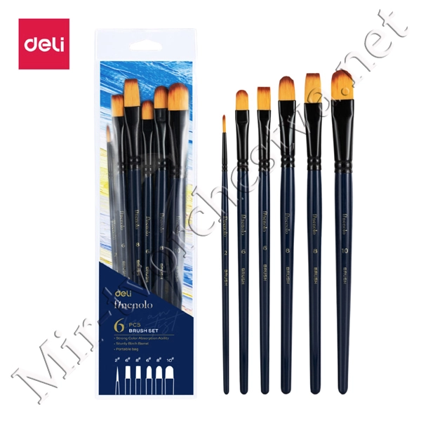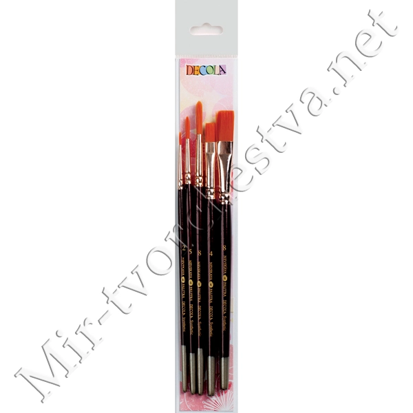 Набор кистей мягкая синтетика 6шт. (круглая №2, плоские №6, 8, овальные №6, 8, 10) в блистере, Finenolo