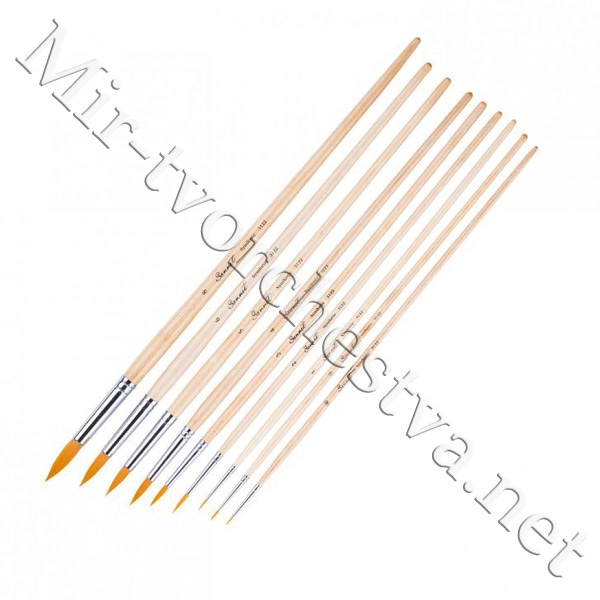 Кисть синтетика, круглая, длинная ручка, пропитанная лаком №1, Сонет