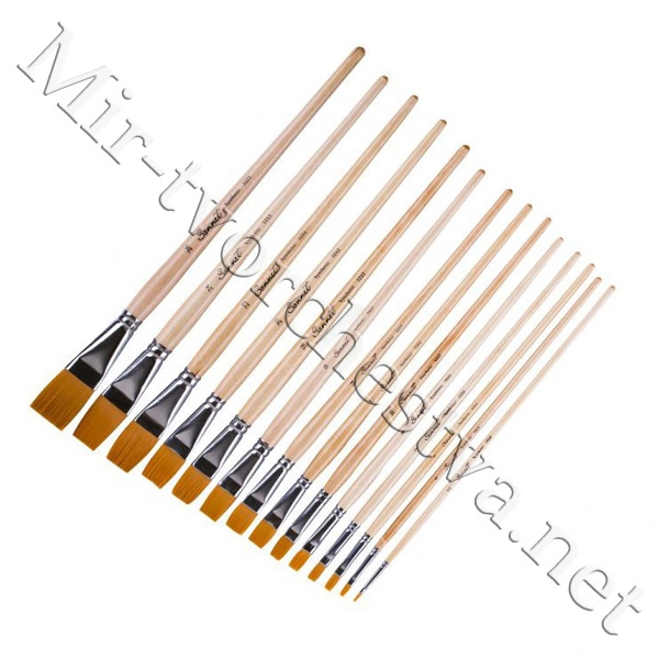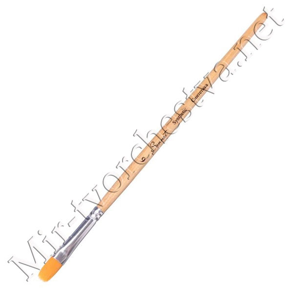 Кисть синтетика, плоская, длинная ручка, пропитанная лаком №6, Сонет