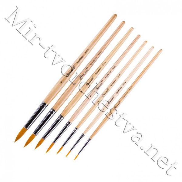 Кисть синтетика, круглая, короткая ручка, пропитанная лаком №6, Сонет