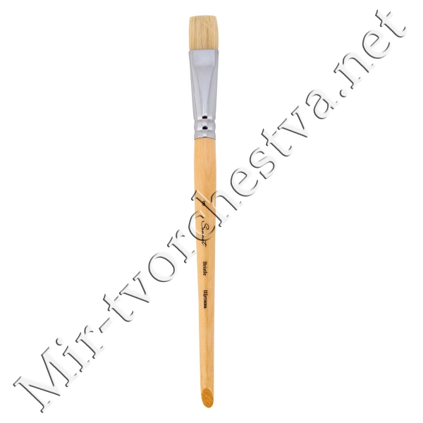 Кисть щетина, плоская, короткая ручка, покрытая лаком №4, Сонет