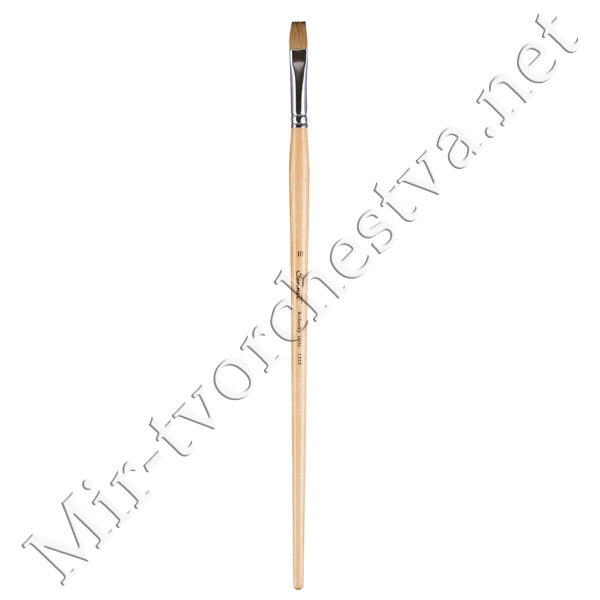 Кисть колонок, плоская, длинная ручка, пропитанная лаком №10, Сонет