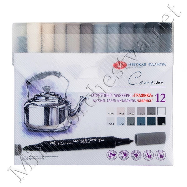 Набор спиртовых маркеров "Графика", 12 цветов, Сонет