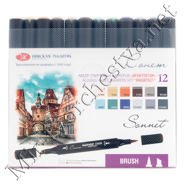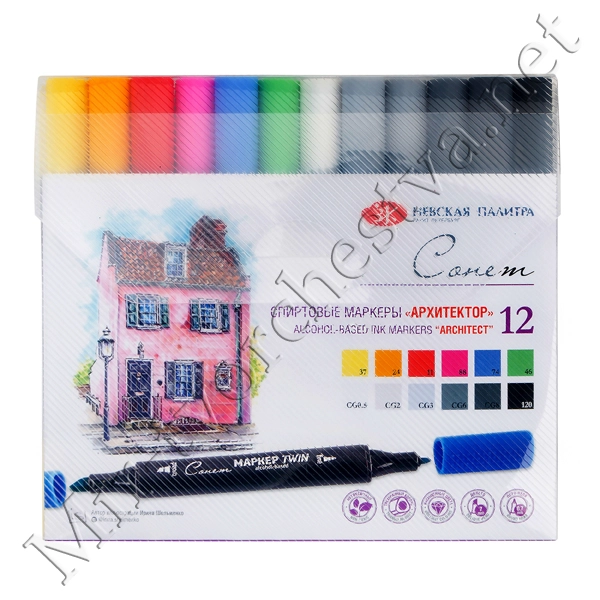 Набор спиртовых маркеров "Архитектор", 12 цветов, Сонет