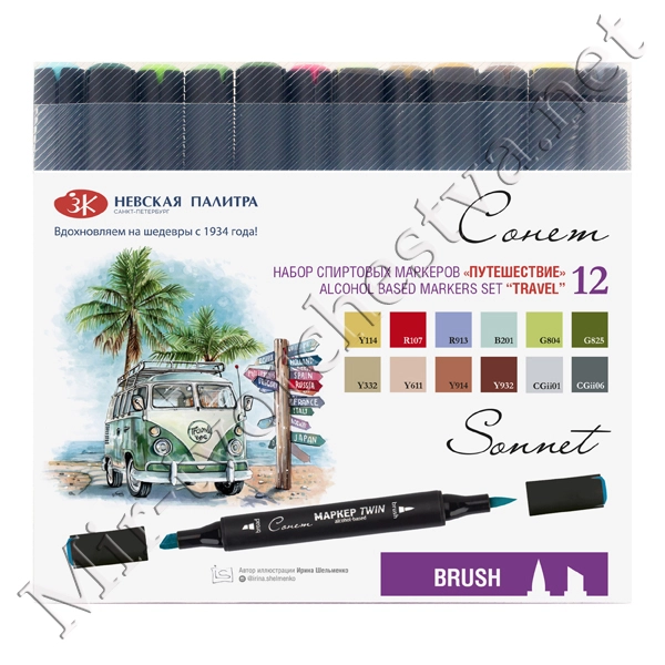 Набор спиртовых маркеров Twin Brush "Путешествие", 12 цветов, Сонет