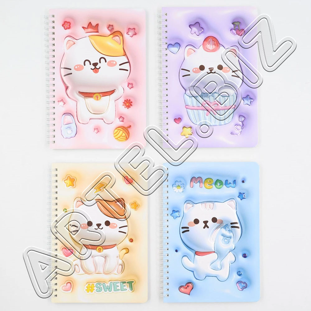Блокнот объемный 14,4*20,5см 60л. КОТИКИ, Розовый, клетка арт.3829, Феникс