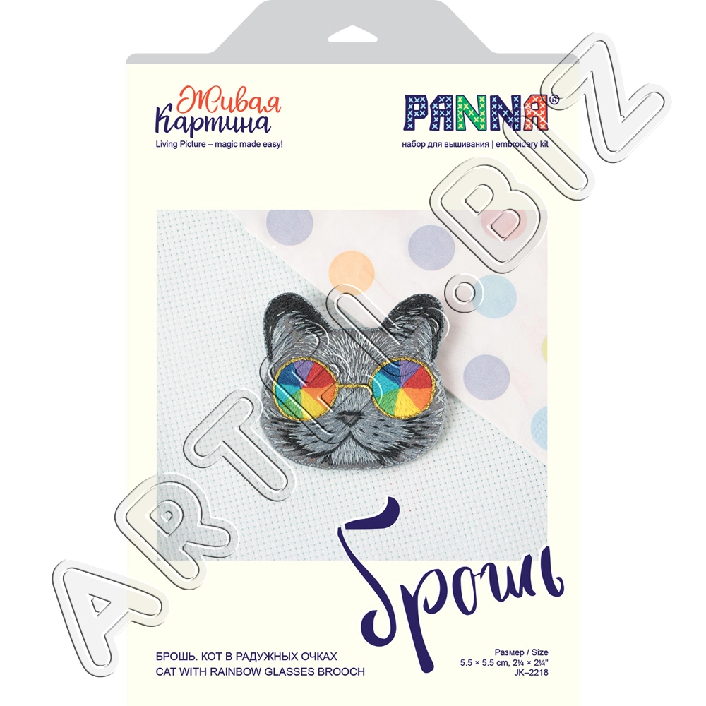 Набор для вышивания "PANNA" "Живая картина" JK-2218 "Брошь. Кот в радужных очках" 5.5x5.5 см