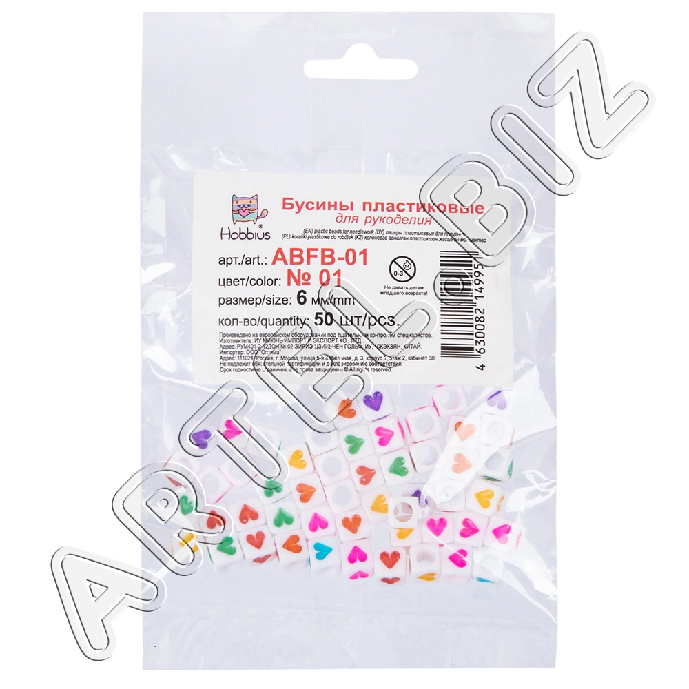 Бусина "Hobbius" пластик ABFB-01 6 мм 10x50 шт №02 смайлики
